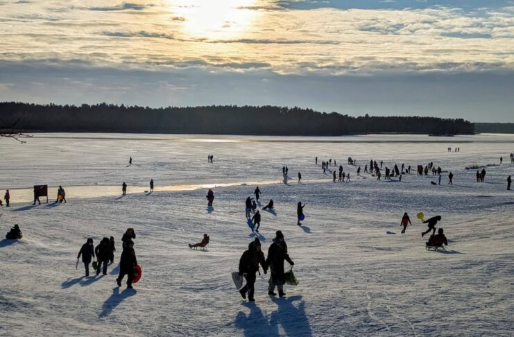 У Житомирі Гідропарк узимку перетворився на улюблене місце для катання на санчатах і зимових прогулянок