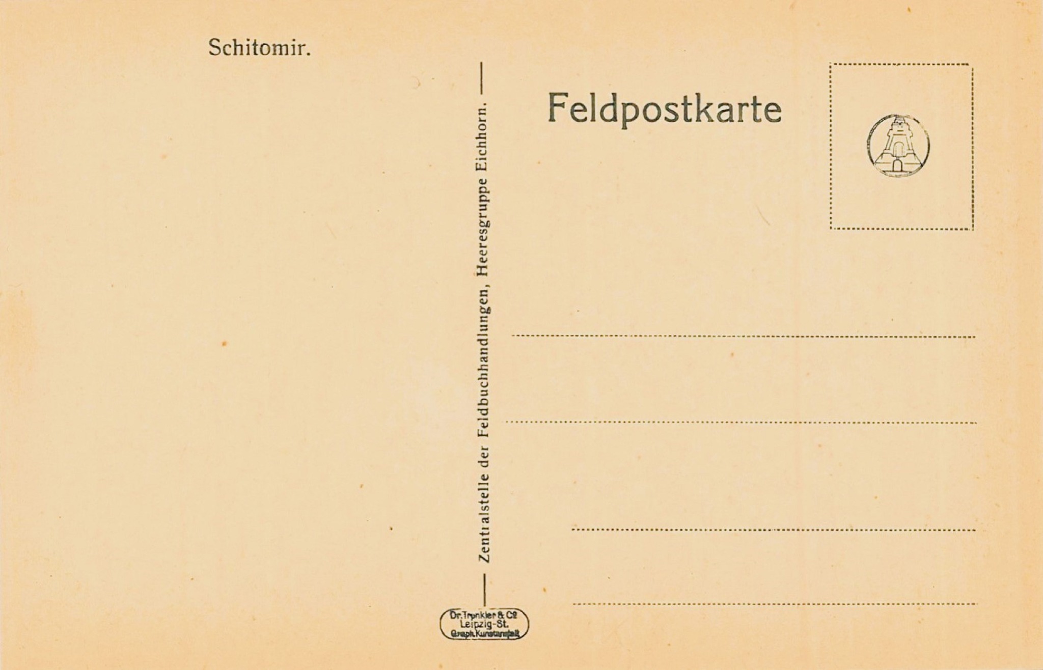 Йдеться про серію німецьких польових листівок, надрукованих у Лейпцигу фірмою Dr. Trenkler & Co. Їх створювали спеціально для солдатів, щоб ті могли надсилати звістки додому з окупованих територій. Саме тому на звороті всі листівки мають однакове оформлення — стандарт військової кореспонденції того часу.