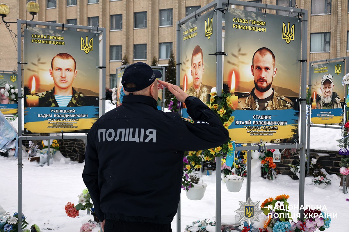 Перед початком офіційної частини керівник поліції області та очільник громади вшанували пам’ять полеглих Захисників України, поклавши квіти до стел з іменами Героїв.