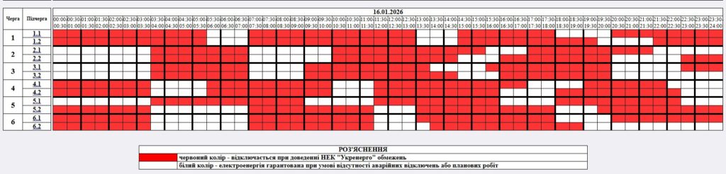 У Житомирській області 16 січня протягом усієї доби діятимуть планові обмеження електропостачання. Відключення застосовуватимуться з 00:00 до 23:59 відповідно до розпорядження НЕК «Укренерго».