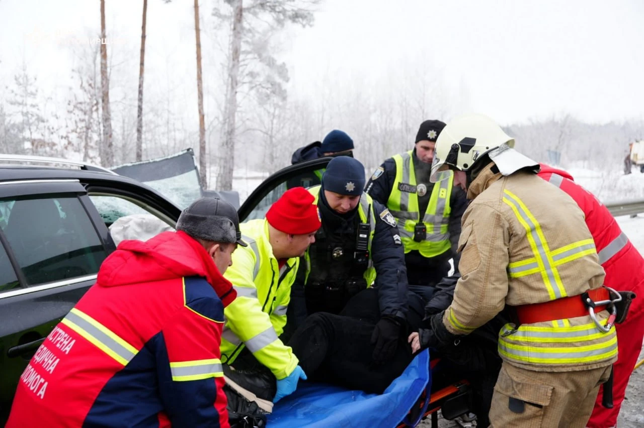 За попередньою інформацією, на автошляху зіткнулися вантажний та легковий автомобілі. Внаслідок удару водія легковика затисло всередині понівеченого салону, і він не міг вибратися самостійно.