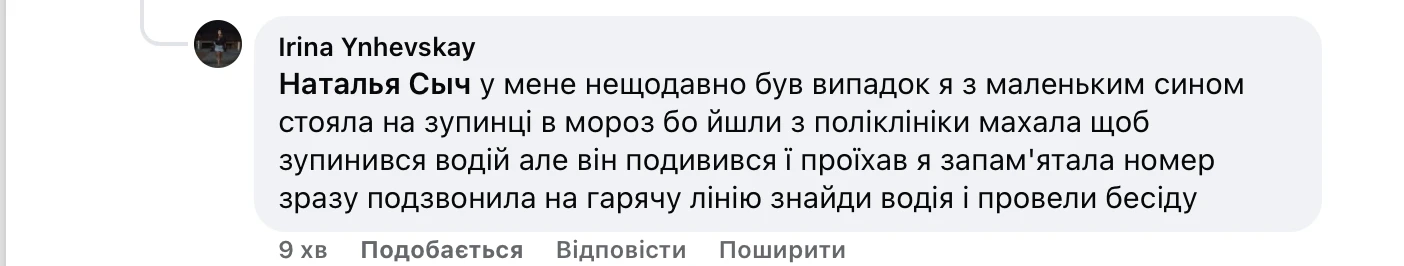 У коментарях до допису інші житомиряни розповіли про схожі ситуації саме з маршрутом №33. Одна з користувачок зазначила, що нещодавно стояла з маленькою дитиною на зупинці в мороз, але водій проїхав повз, не зупинившись, попри те, що його намагалися зупинити.