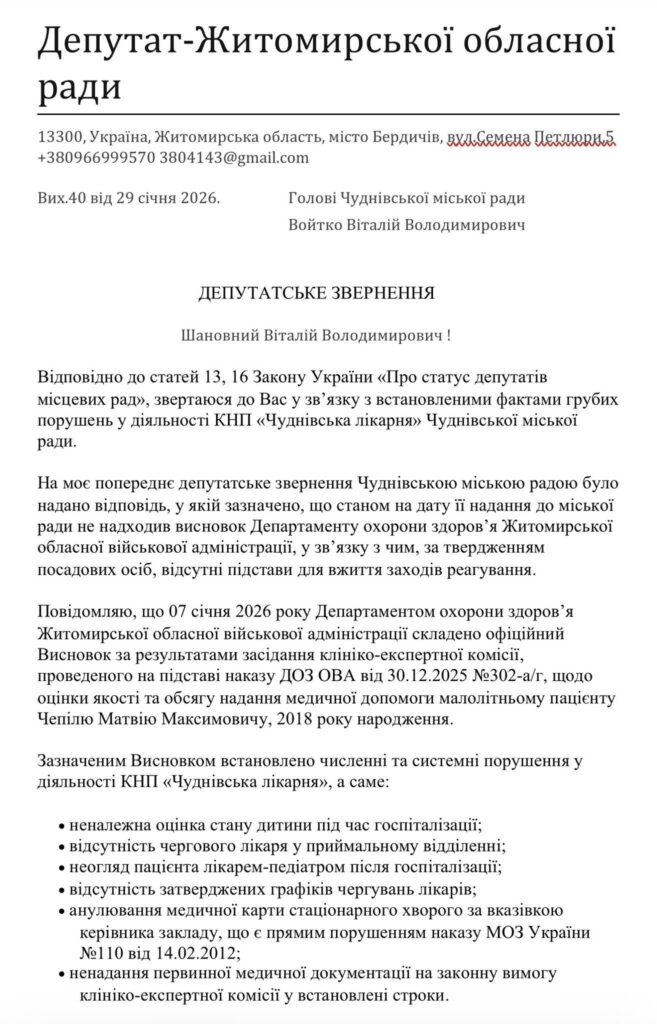 Нагадаємо, Житомир-Онлайн писав про ситуацію з ненаданням допомоги дитині наприкінці грудня 2025 року, а також повідомляв про результати перевірки у січні 2026-го.