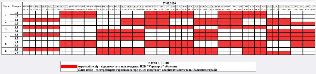 27 лютого, за розпорядженням НЕК «Укренерго», з 00:00 до 23:59 на Житомирщині вимушено будуть застосовуватись заходи обмеження споживання електроенергії.