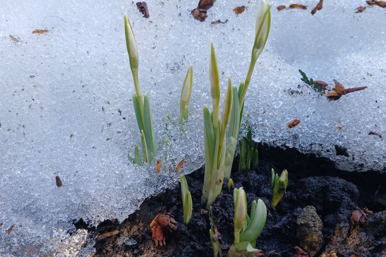 - Пробудження цибулинних: з-під землі вже пробиваються перші паростки тюльпанів;