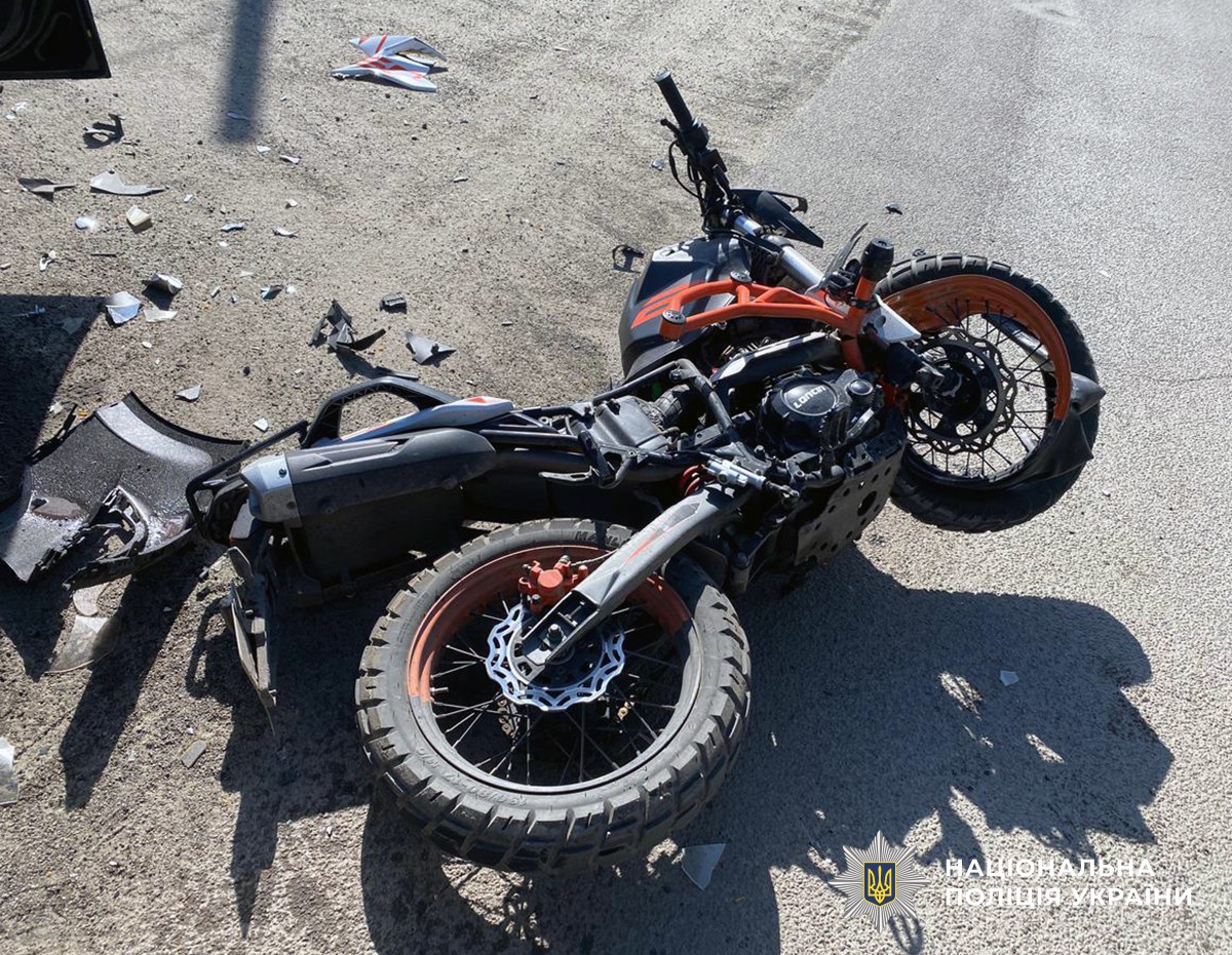 Внаслідок удару молодий водій мотоцикла отримав травми різного ступеня тяжкості. Його оперативно доставили до медичного закладу для надання необхідної допомоги.