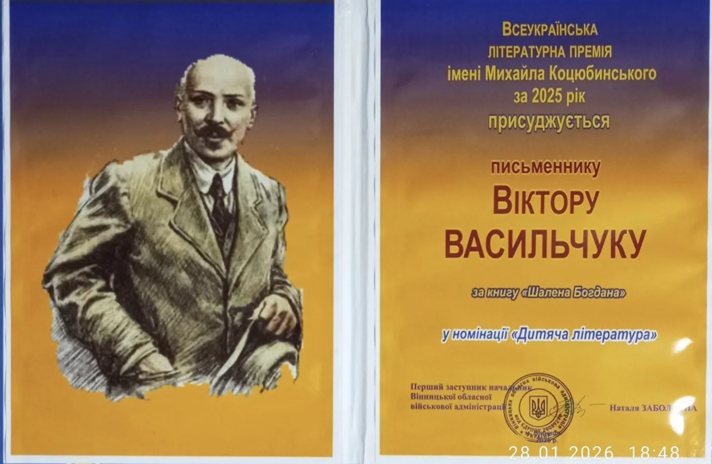 Це вже не перша висока відзнака автора, який впевнено закріплює свої позиції в сучасному літературному процесі. Нагадаємо, що порівняно нещодавно Віктор Васильчук став лауреатом премії імені Лесі Українки. Тепер його вагомий внесок у популяризацію українського слова високо оцінило журі Вінницької обласної організації Національної спілки письменників України.