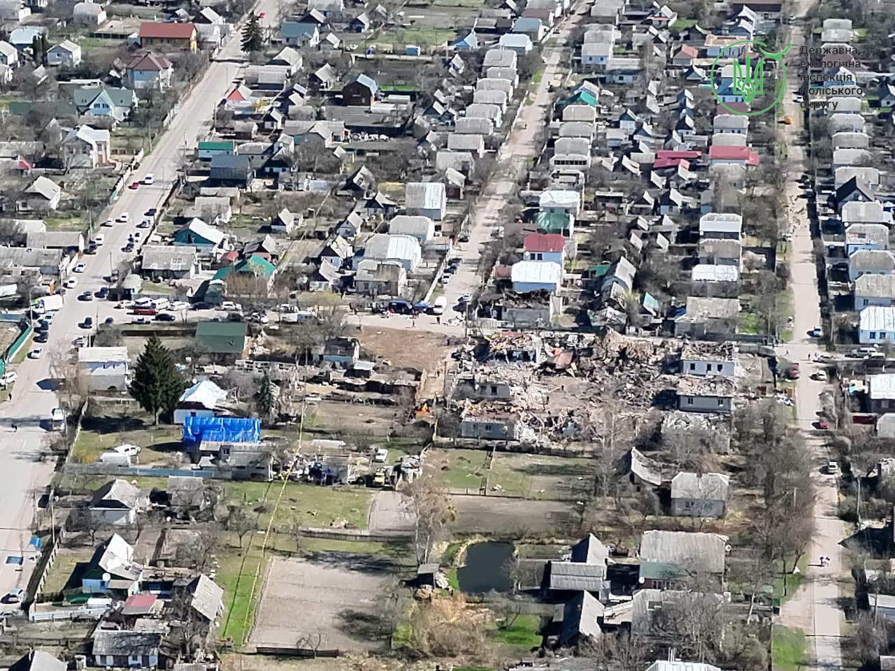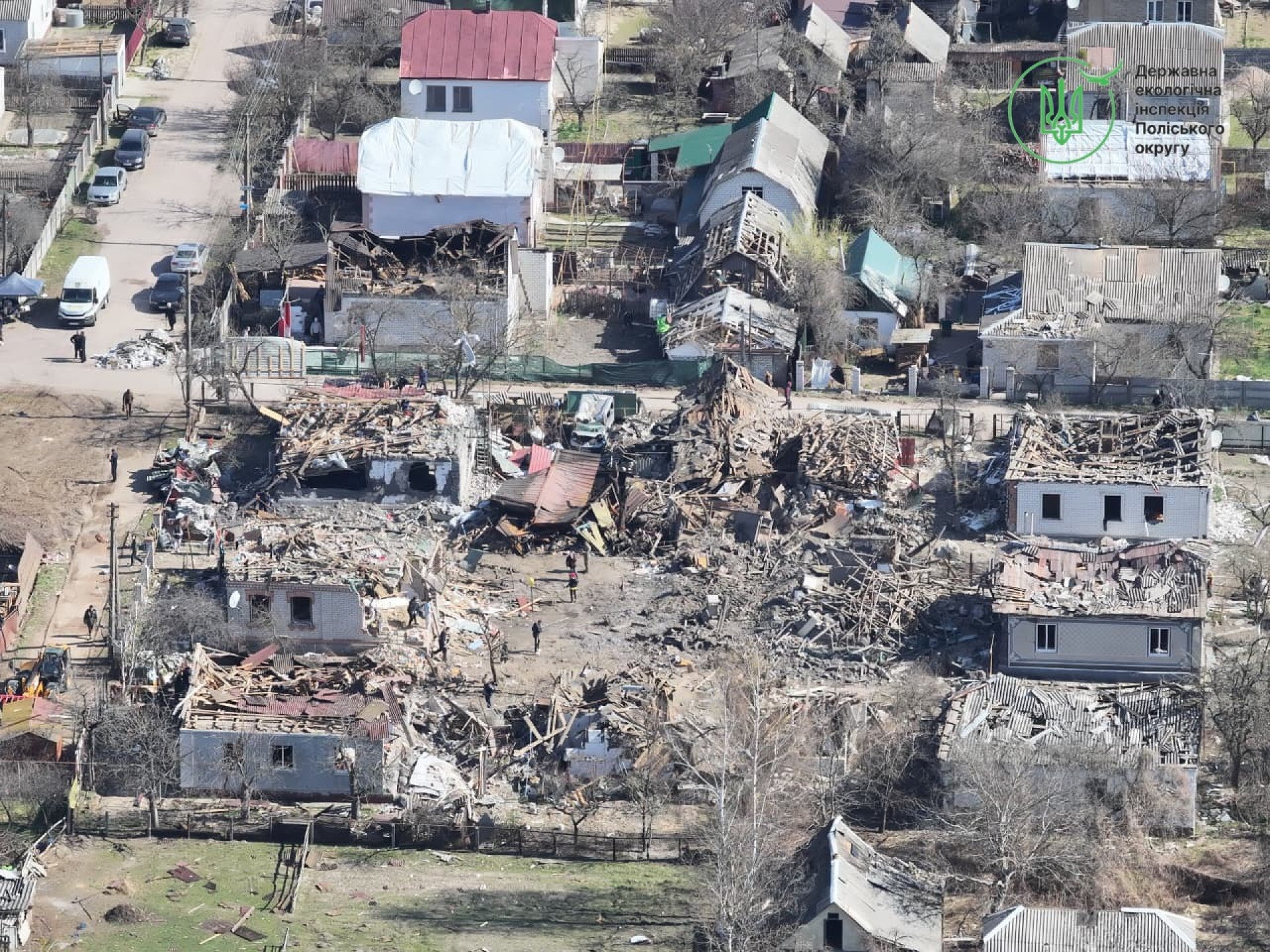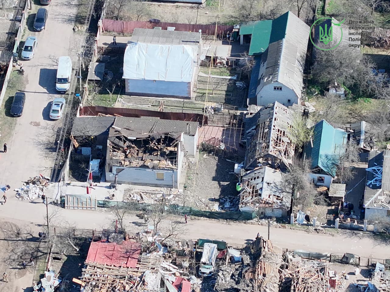 Вже 4 квітня, щойно правоохоронні органи та рятувальники завершили першочергові оперативні дії на місцях влучань, до роботи стали екоінспектори. Для максимально точної оцінки масштабів трагедії фахівці залучили безпілотники.