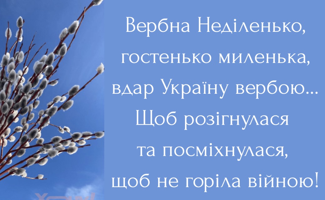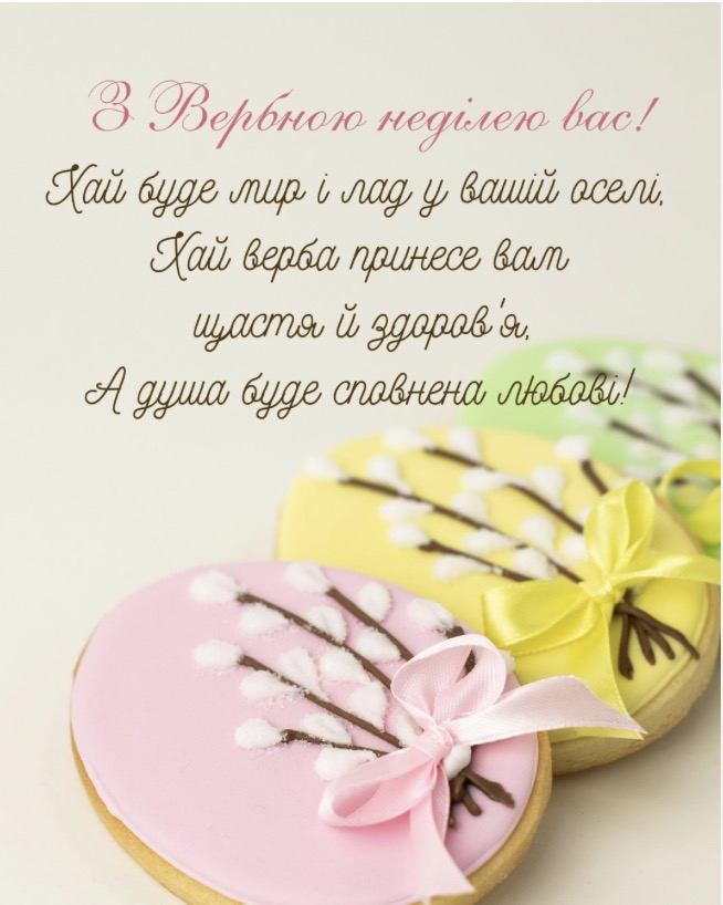 • З Вербною неділею! Нехай пухнасті котики принесуть у ваш дім лад, спокій та Боже благословення. Бажаю, щоб гілочка верби вибила всі негаразди, а натомість подарувала міцне здоров’я та незламну віру в краще майбутнє. Миру нашій землі!