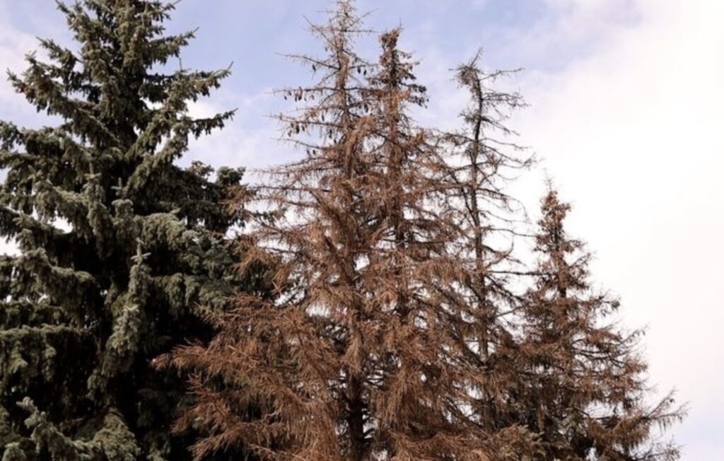 «По суті, ці дерева вже засохли. Якби вони були маленькі, нещодавно висаджені, тоді ще підлягали б лікуванню», — пояснює начальниця відділу екології та природних ресурсів Житомирської міської ради Поліна Мурашевська. Вона додає, що для міських площ вікова межа ялини становить 60 років, тому ці дерева просто вичерпали свій життєвий ресурс.