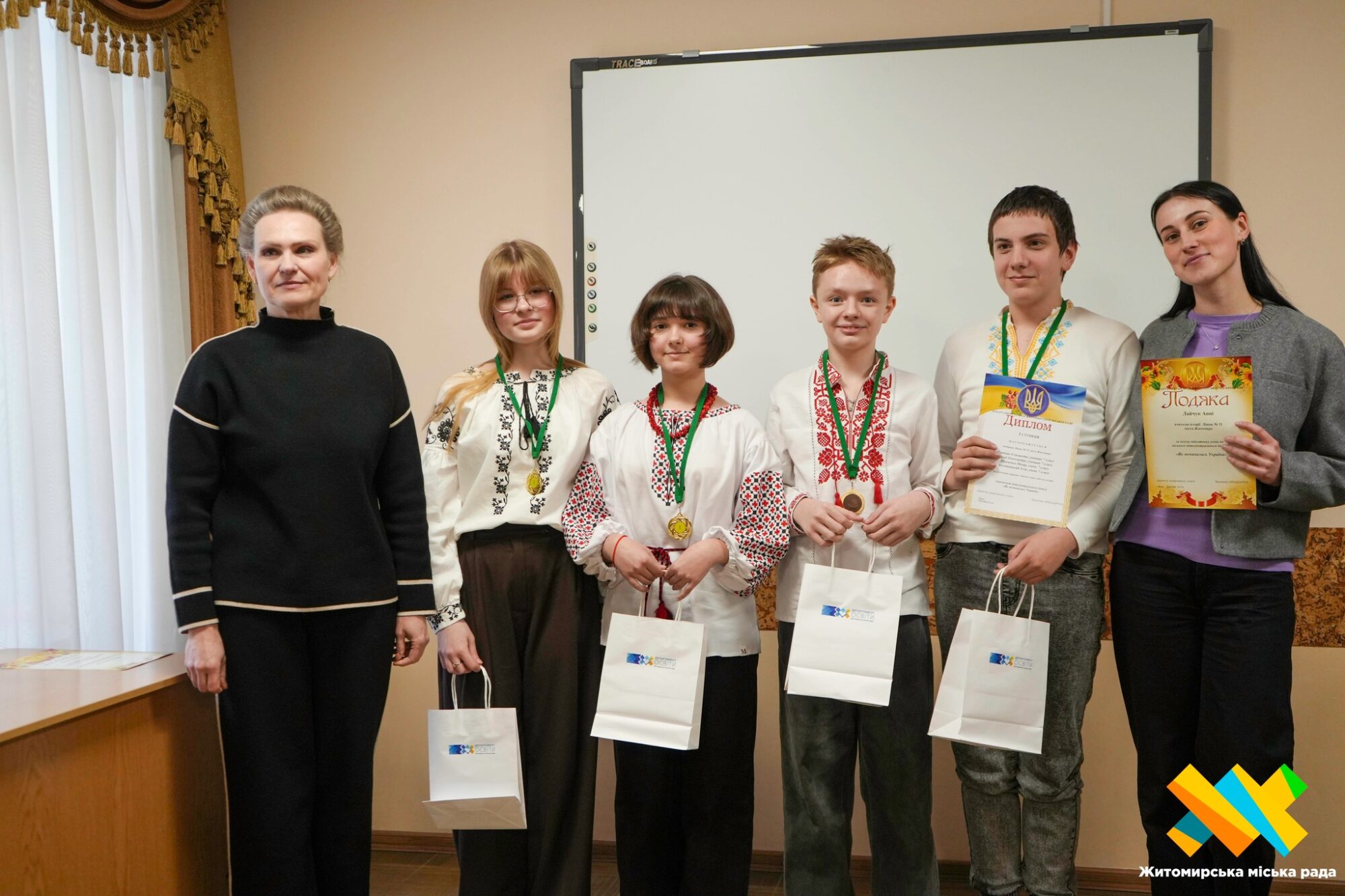 «Людина, яка вміє відстоювати свою точку зору і знаходити рішення там, де інші не бачать, викликає повагу. А ті, хто перетворює слово і логіку на свій інструмент, — справді вражають», — наголосила заступниця директора міського департаменту освіти Ірина Лавренчук під час нагородження.