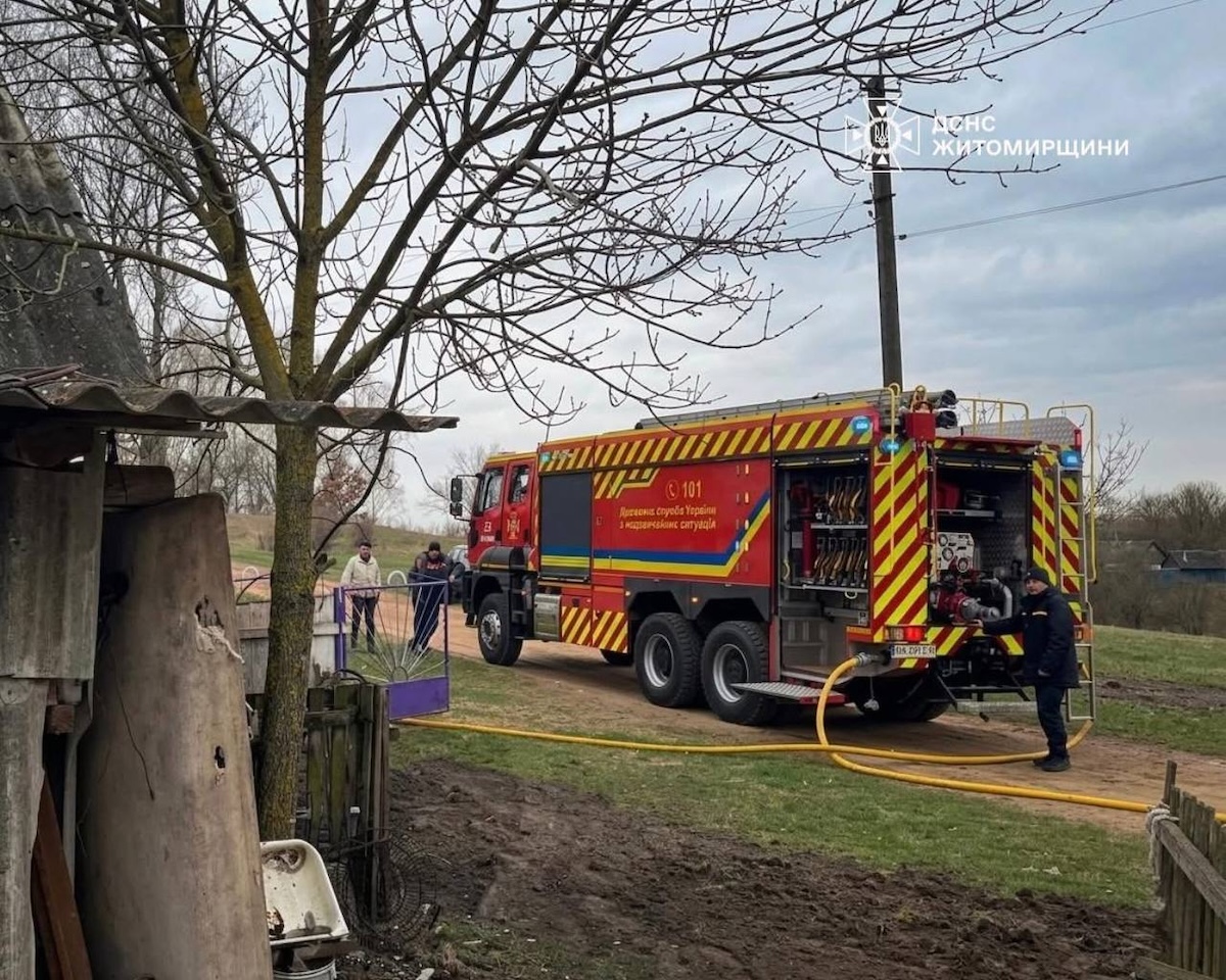 Схожа ситуація сталася і в Коростенському районі. У селі Листвин рятувальникам також довелося відвойовувати у вогняної стихії ціле обійстя. Завдяки їхнім злагодженим діям вдалося врятувати від повного знищення не лише господарчу споруду, а й літню кухню та головний житловий будинок господарів.