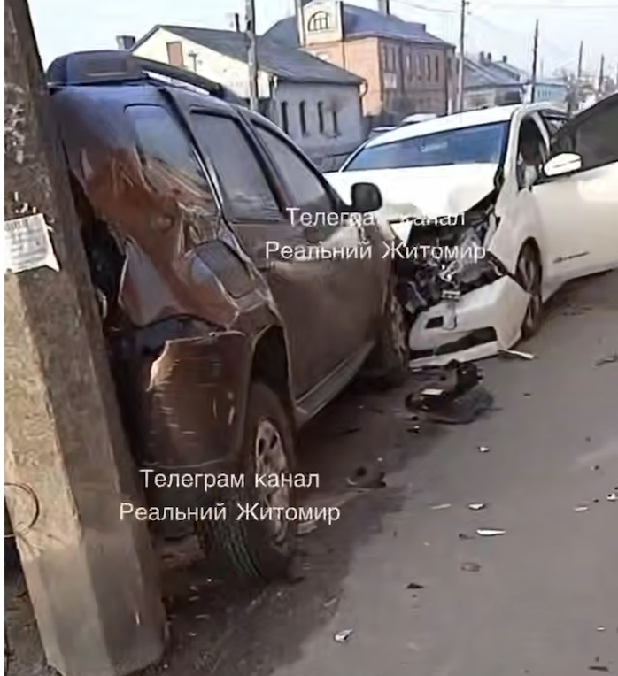 Кадри з наслідками ранкової аварії опублікував Telegram-канал «Реальний Житомир». Зважаючи на положення транспортних засобів, коричневий Duster був припаркований на тротуарі, коли в його задню частину раптово влетів інший легковик.