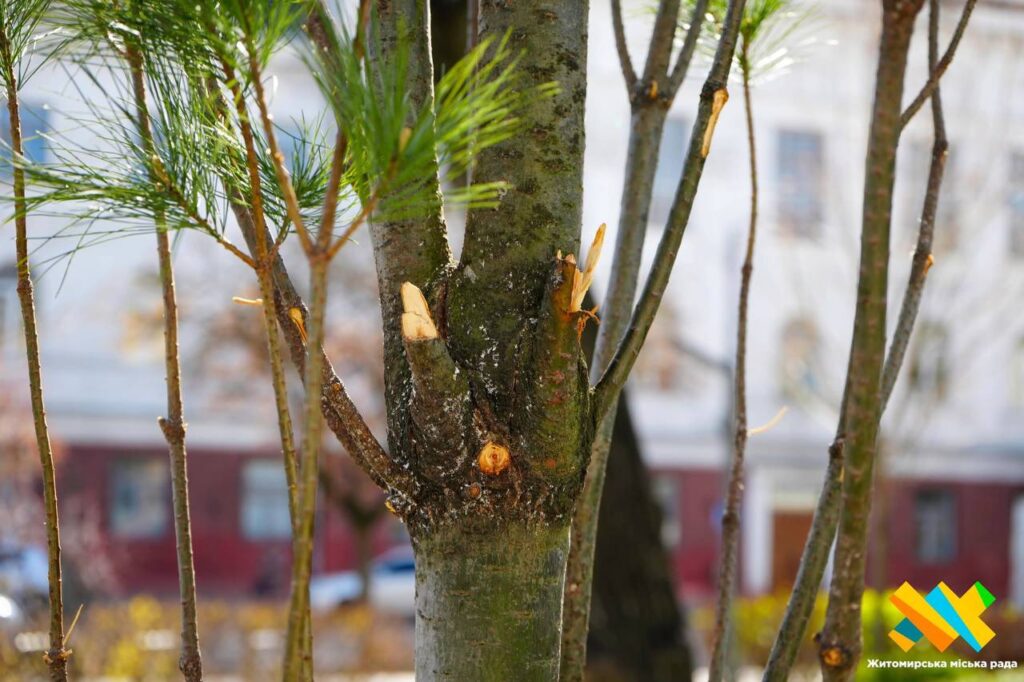 «Ці сосни не тільки втратили естетичний вигляд. Кора дерев пошкоджена в багатьох місцях. Це відкриває доступ для хвороб та шкідників. Ми, звісно, лікуватимемо ці дерева від травм», — розповідає директор комунального підприємства «Зеленбуд» Житомирської міської ради Олександр Волокіта.