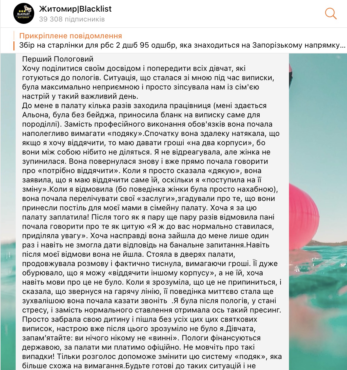 Своєю історією жінка поділилася у місцевому Telegram-каналі. За її словами, замість підтримки вона отримала нахабні вимоги «подякувати» готівкою за послуги, які й так фінансуються державою або були оплачені нею офіційно. На жаль, проблема медичних поборів у регіоні не нова — раніше лікарі на Житомирщині вимагали гроші навіть з військовослужбовців.