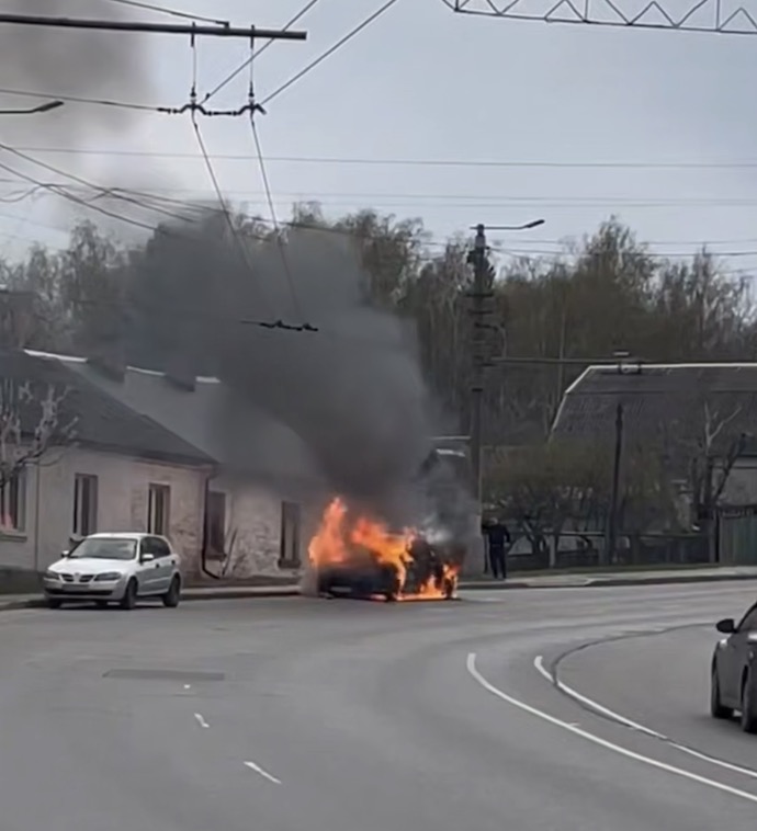 Як ми повідомляли раніше, на Чуднівському мосту під час руху спалахнув легковий автомобіль. За лічені хвилини полум’я повністю охопило транспортний засіб, утворивши величезний стовп чорного диму.
