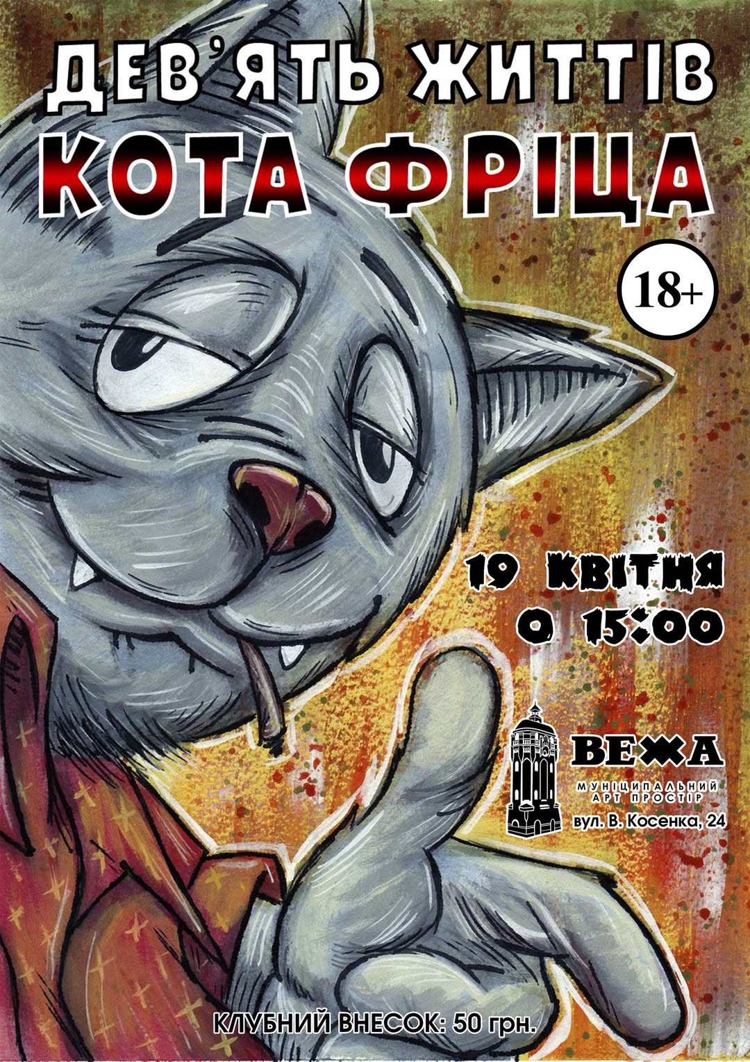 Житомирська «Вежа» продовжує експериментувати з форматами та знайомити містян із неоднозначними шедеврами світового кінематографа. У неділю, 19 квітня, Муніципальний арт-простір перетвориться на осередок провокаційної класики 70-х — тут покажуть культову американську анімацію «Дев’ять життів кота Фріца».