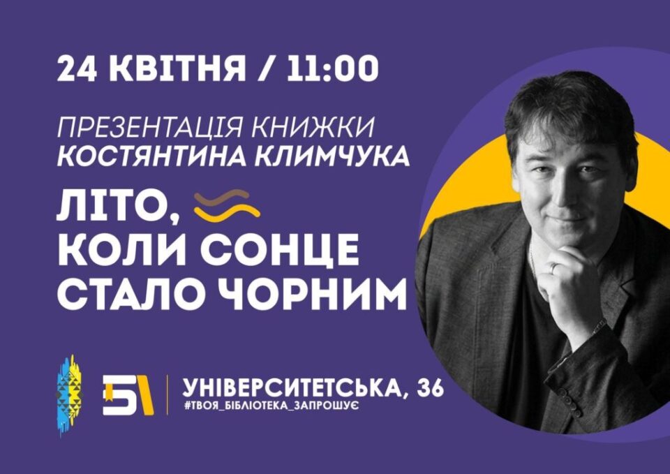 Презентація книги Костянтина Климчука «Літо, коли сонце стало чорним» відбудеться 24 квітня об 11:00 за адресою: вул. Університетська, 36.