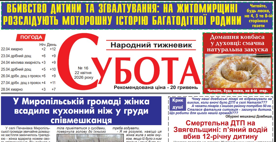 Читайте у свіжому номері газети «Субота»: