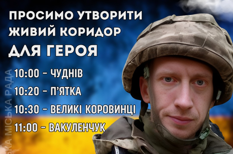 Шановні жителі громади, просимо всіх гідно зустріти нашого Героя — вийти та утворити живий коридор завтра, 23 квітня 2026 року, орієнтовно: