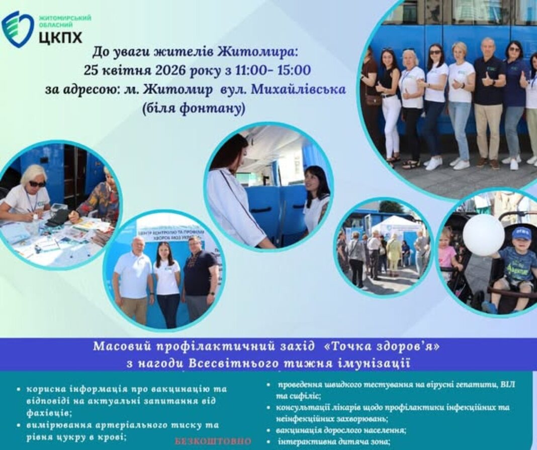 Як повідомляє Житомир-Онлайн, захід приурочений до Всесвітнього тижня імунізації. Нагадаємо, що профілактичні ініціативи в місті набирають обертів — нещодавно Центр ПМСД долучився до програми «Скринінг здоров’я 40+» на майдані Визволення, а тепер корисні медичні послуги доступні прямо на пішохідній вулиці.
