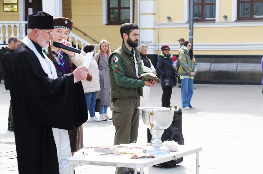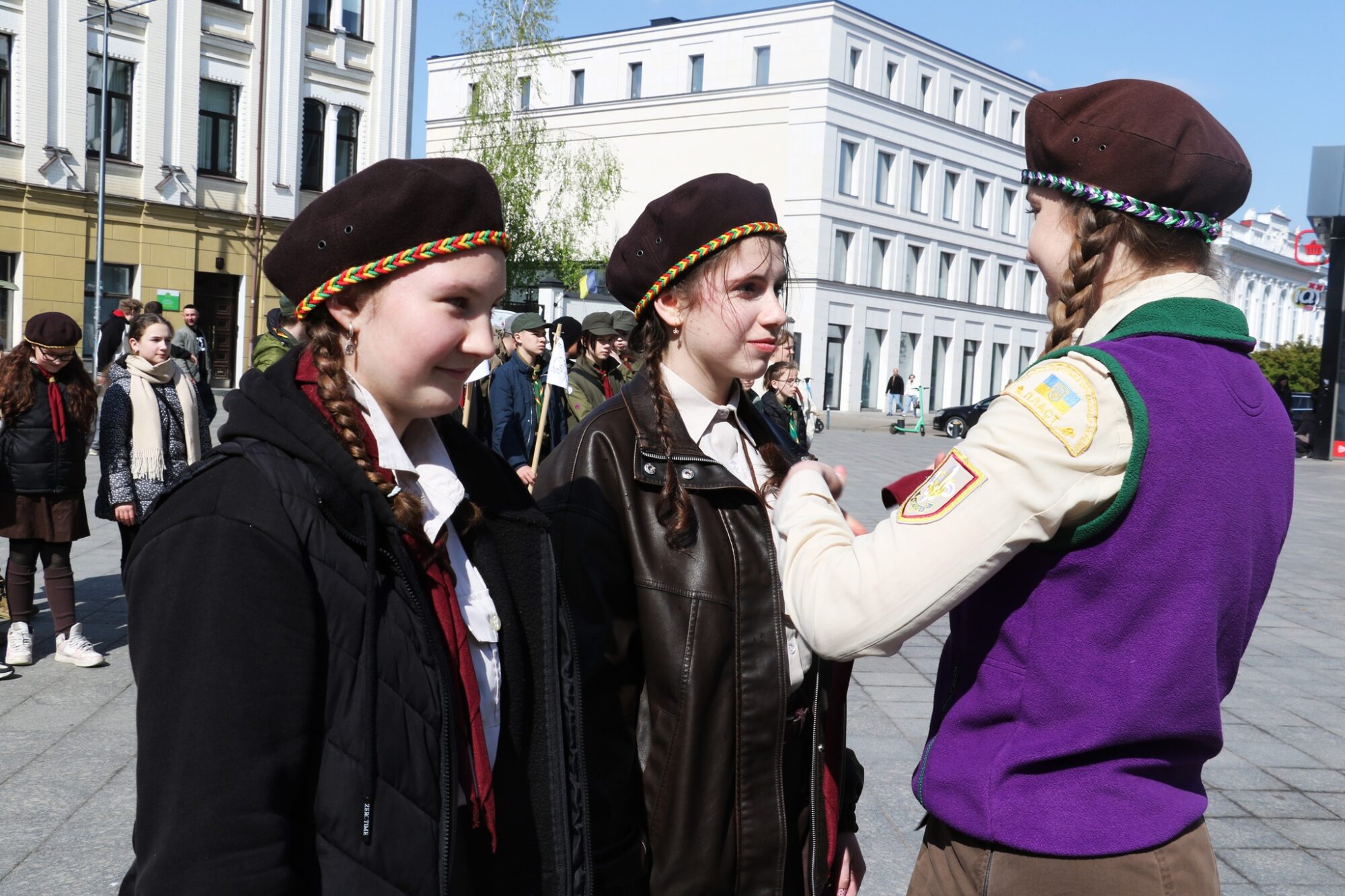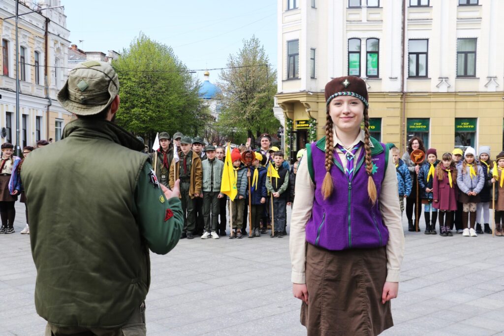 Особливим цей день став для двох 14-річних житомирянок — Насті Шамшур та Поліни Прогожук. Дівчатам урочисто пов’язали малинові хустинки, що символізує їхній офіційний вступ до організації.