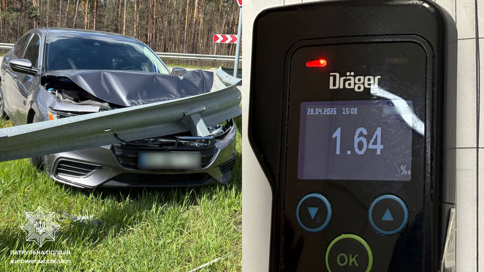 Керманич пройшов огляд на визначення стану сп’яніння у найближчому медзакладі. Результат — 1,64 проміле», – йдеться у повідомленні.