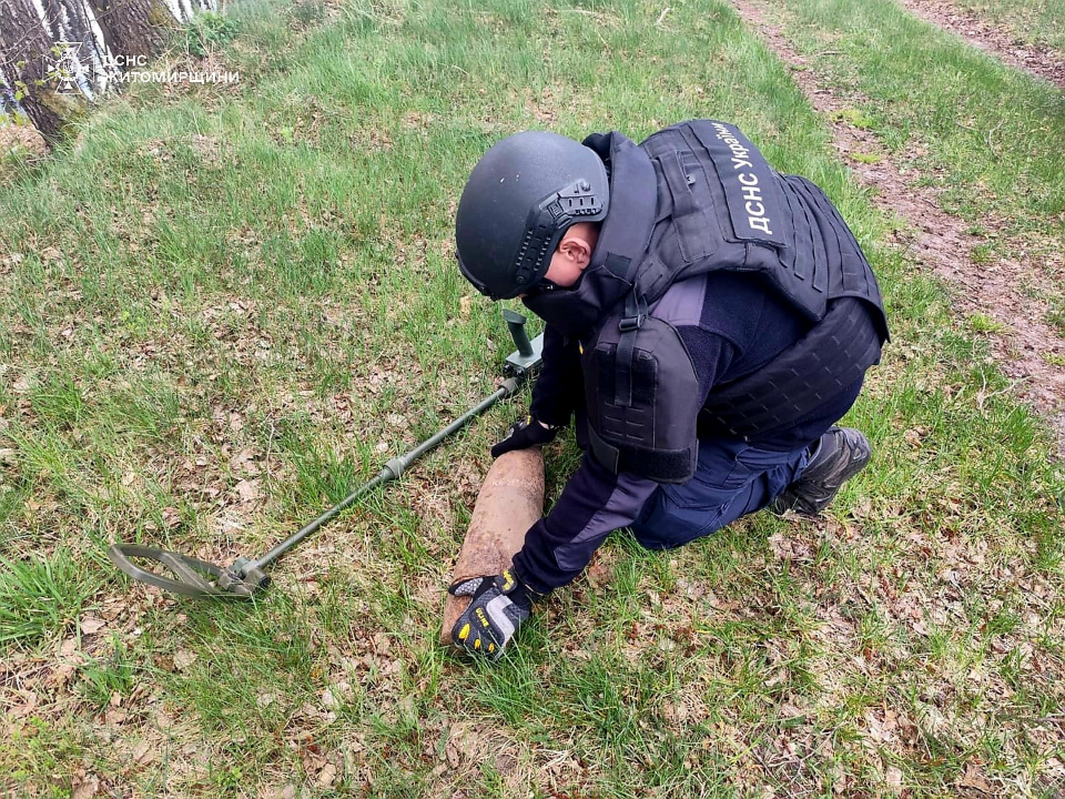Сапери ДСНС знешкодили артилерійський снаряд часів Другої світової війни, виявлений місцевою мешканкою в лісі у с. Перемога Звягельського району.